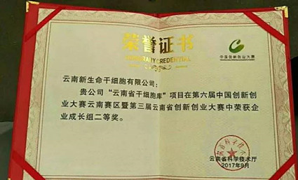 我司申報(bào)的“云南省干細(xì)胞庫”項(xiàng)目獲得由云南省科技廳授予的第三屆云南省創(chuàng)新創(chuàng)業(yè)大賽成長組二等獎,最終成功晉級第六屆中國創(chuàng)新創(chuàng)業(yè)大賽生物醫(yī)藥行業(yè)總決賽。