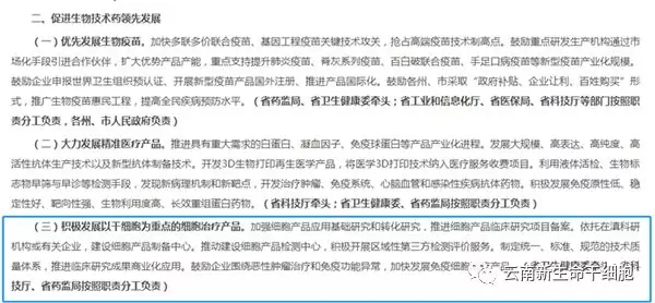 意見中明確:積極發(fā)展以干細(xì)胞為重點(diǎn)的細(xì)胞治療產(chǎn)品。加強(qiáng)細(xì)胞產(chǎn)品應(yīng)用基礎(chǔ)研究和轉(zhuǎn)化研究,推進(jìn)細(xì)胞產(chǎn)品臨床研究項(xiàng)目備案。依托在滇科研機(jī)構(gòu)或有關(guān)企業(yè),建設(shè)細(xì)胞產(chǎn)品制備中心。推動(dòng)建設(shè)細(xì)胞產(chǎn)品檢測(cè)中心,積極開展區(qū)域性第三方檢測(cè)評(píng)價(jià)服務(wù)。制定統(tǒng)一、標(biāo)準(zhǔn)、規(guī)范的技術(shù)質(zhì)量體系,推進(jìn)臨床研究成果商業(yè)化應(yīng)用。鼓勵(lì)企業(yè)圍繞惡性腫瘤治療和免疫功能異常,加快發(fā)展免疫細(xì)胞治療產(chǎn)品。由云南省衛(wèi)生健康委牽頭;云南省科技廳、云南省藥監(jiān)局按照職責(zé)分工負(fù)責(zé)。