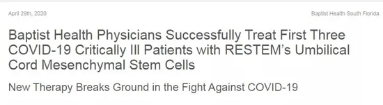 2020年疫情爆發(fā)以來,多個國家均將干細(xì)胞應(yīng)用到了新冠肺炎患者的救治當(dāng)中,并相繼取得積極地臨床療效。例如,根據(jù)今年4月美國的報道,3名新冠肺炎急性呼吸窘迫綜合癥患者接受了臍帶間充質(zhì)干細(xì)胞治療,成為了首批在美國FDA緊急批準(zhǔn)條件下接受這種療法的成功研究案例。