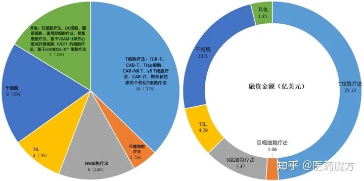 醫(yī)藥魔方Pharma Invest數(shù)據(jù)庫顯示,2021 H1全球細(xì)胞療法領(lǐng)域涉及融資約60起(包括IPO融資),總金額超73億美元,其中中國超20億美元。A輪融資數(shù)占比最高(28%)。所涉及的技術(shù),包括熱門的CAR-T、CAR-NKT等,也包括iPSC細(xì)胞療法。