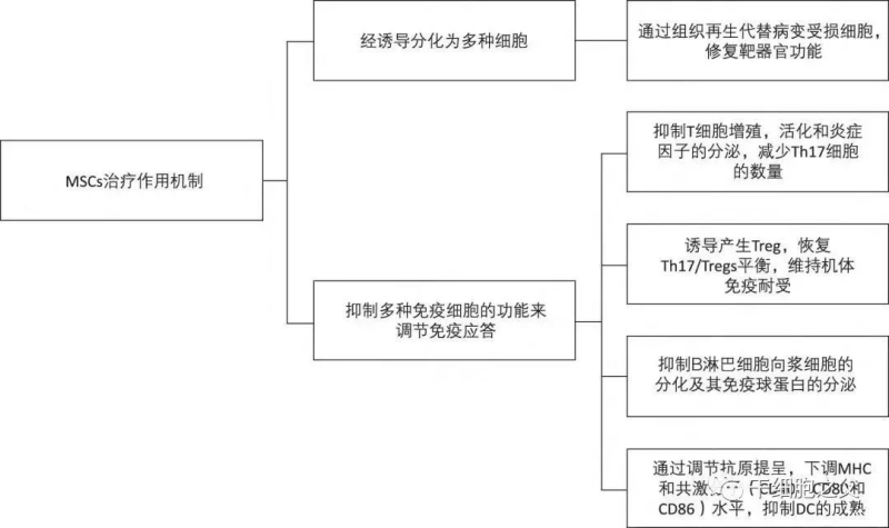 對于自身免疫性疾病,間充質干細胞(MSCs)可以在自身免疫性疾病的發(fā)病機制環(huán)節(jié)發(fā)揮作用,主要作用機制如下: