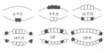 6個(gè)月的時(shí)候先長(zhǎng)出下面的兩顆小門牙,9個(gè)月的時(shí)候長(zhǎng)出上面的四顆小門牙,12個(gè)月的時(shí)候下面的兩顆小門牙開始長(zhǎng)出,一歲半的時(shí)候第一顆大牙,上下左右各一顆,一共四顆長(zhǎng)出來。這個(gè)時(shí)候就會(huì)留了一個(gè)縫隙,這個(gè)縫隙是留給兩歲時(shí)候長(zhǎng)出來的小虎牙的,兩歲半的時(shí)候最后一顆大牙也開始成長(zhǎng)了。